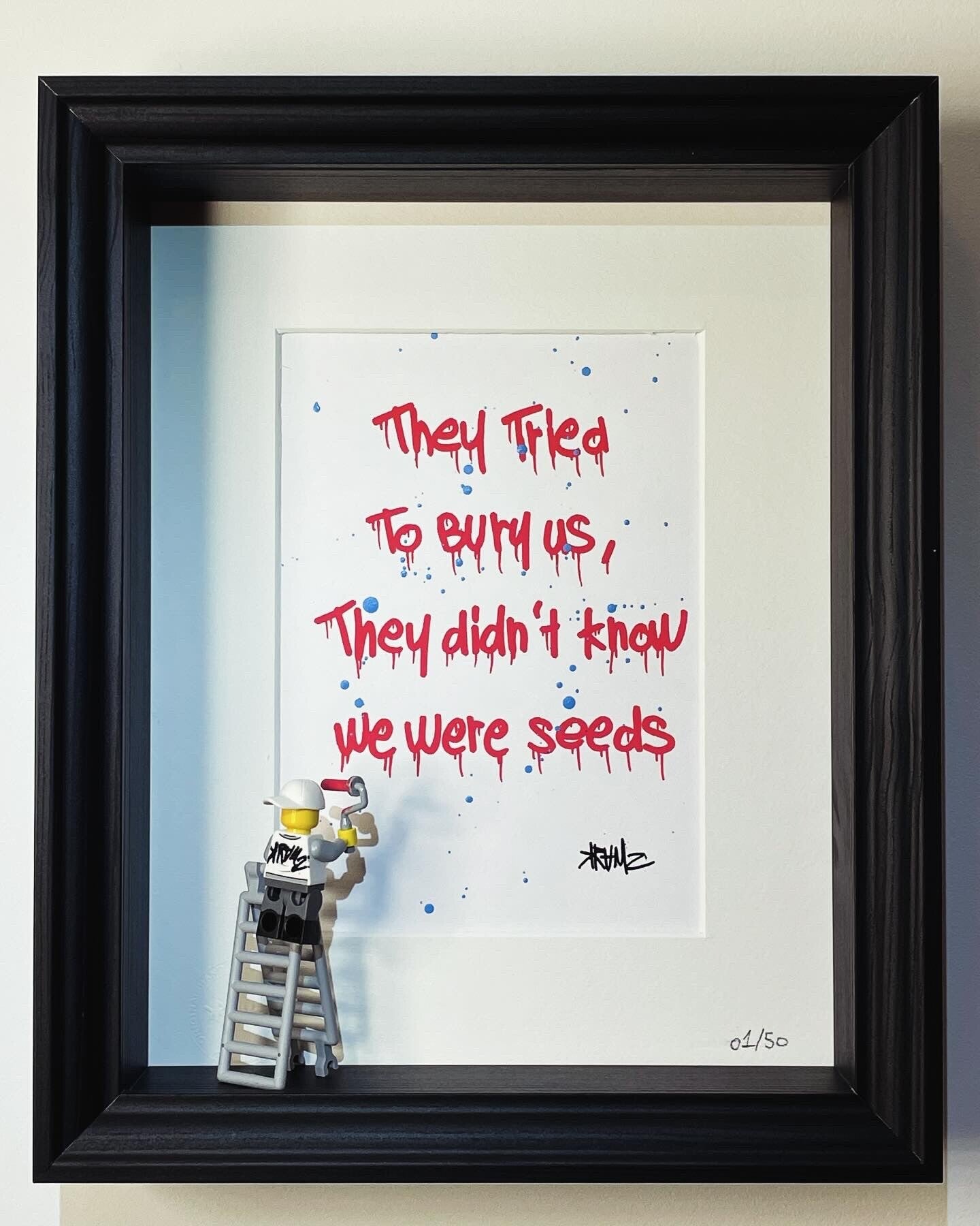 Delivered with the frame + the Kram2Boy Lego + the authenticity sticker.