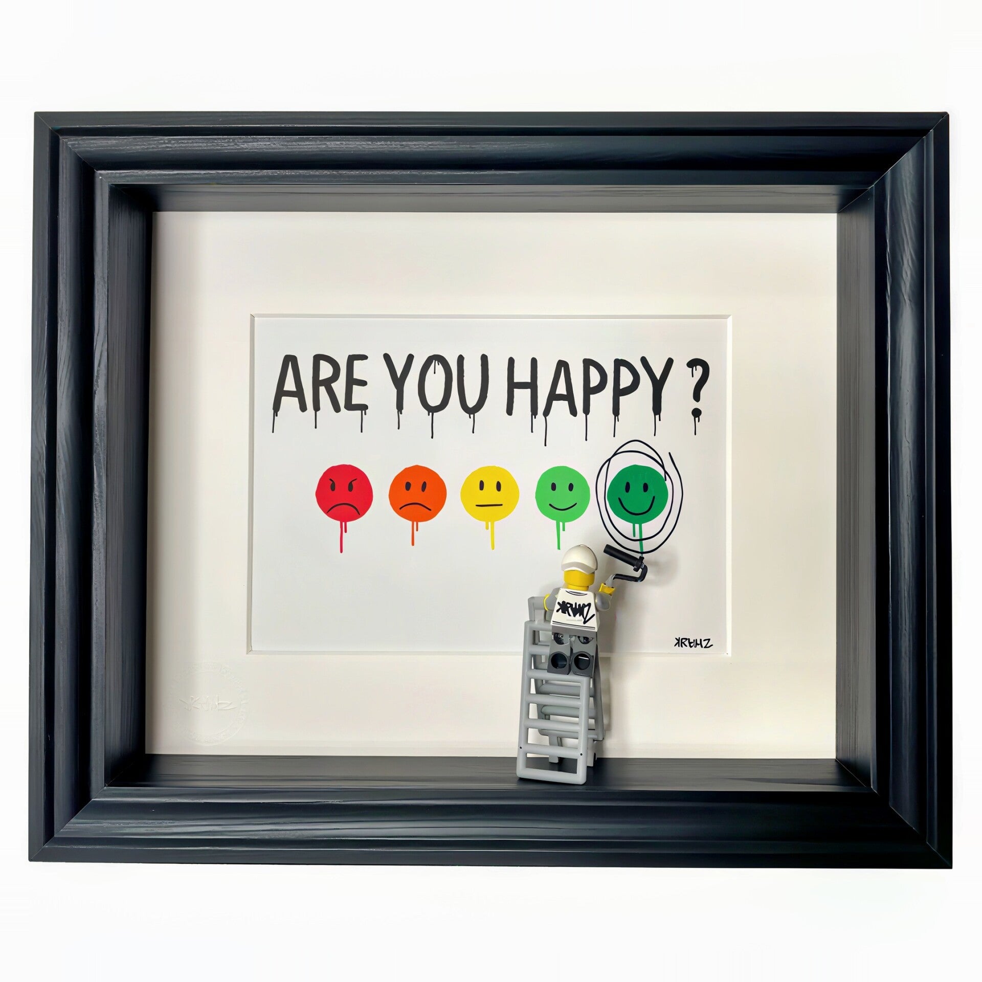 Delivered with the frame + the Kram2Boy Lego + the authenticity sticker